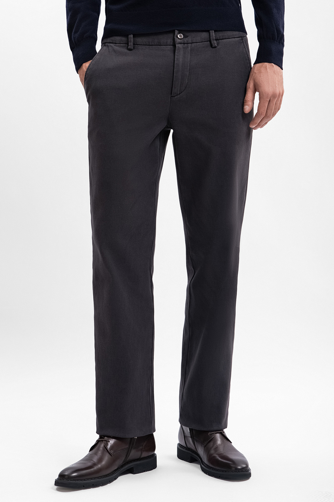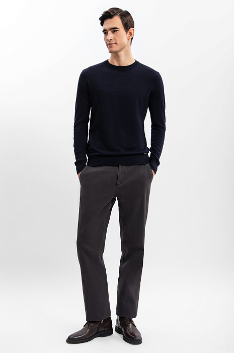 Плотные брюки KANZLER для прогулок прохладным днем и офисных будней. Модель прямого кроя, в благородном коричневом оттенке, комфортного расслабленного кроя с функциональными карманами. Смесовый материал из мягкой длинноволокнистой шерсти, приятной на ощупь, и легкого эластана отлично подходит для частого применения. Он хорошо тянется и обеспечивает отличную посадку по фигуре. Наши стилисты советуют носить эту универсальную пару в комплекте с джемпером, водолазкой или кардиганом для создания образа в стиле кежуал на каждый день, с классической сорочкой - для деловой встречи. Параметры модели: рост 192, 101-76-97 Размер на модели: 50