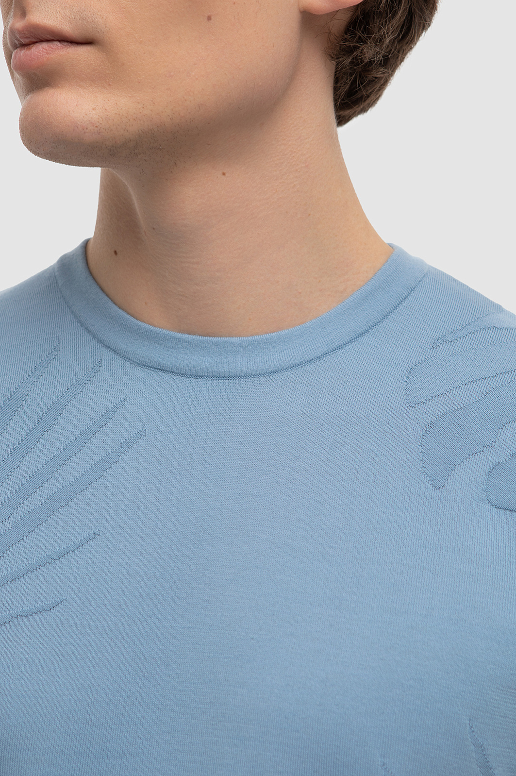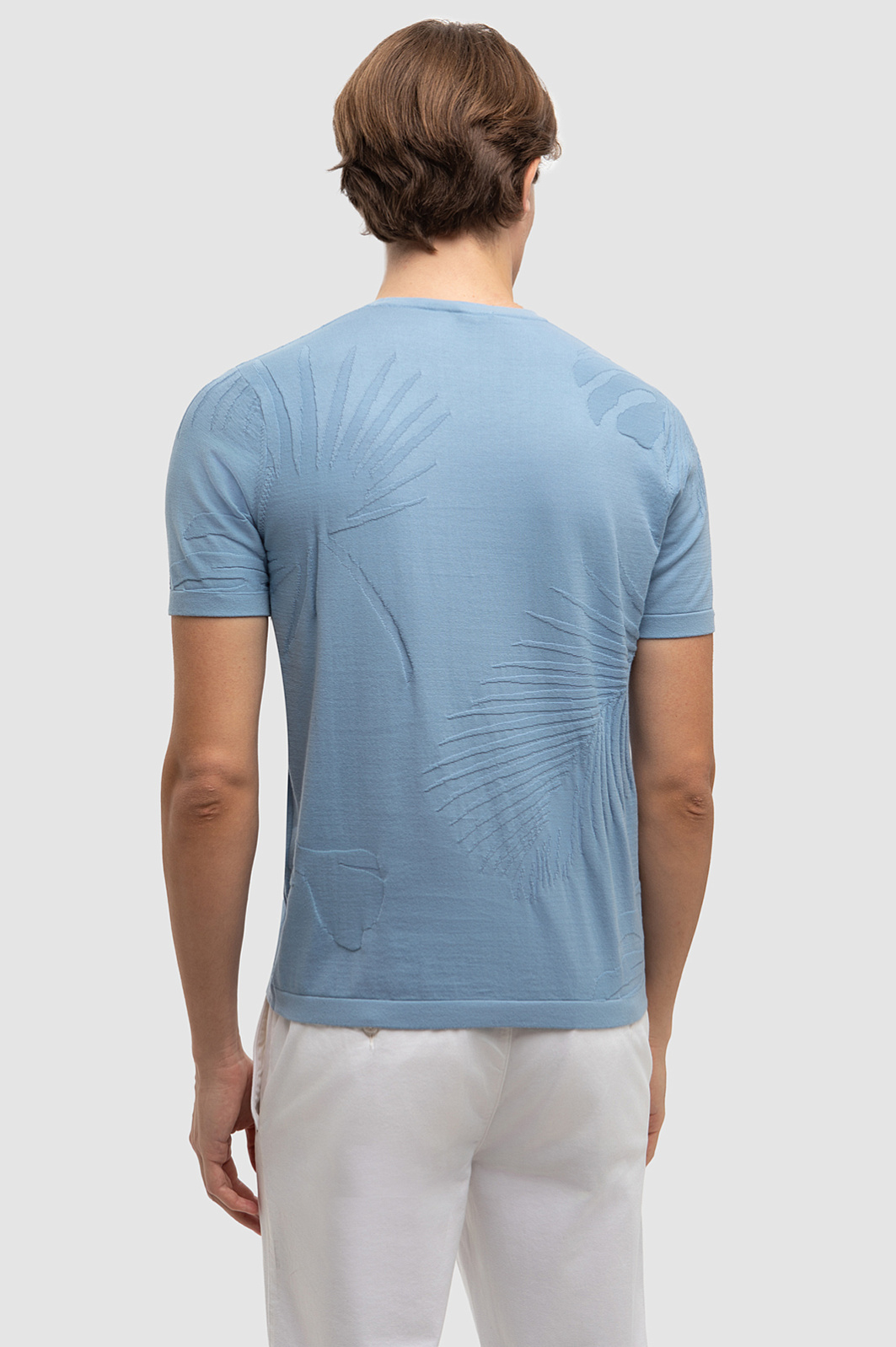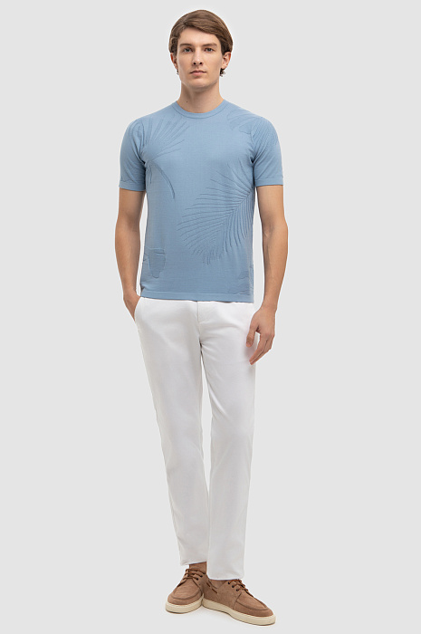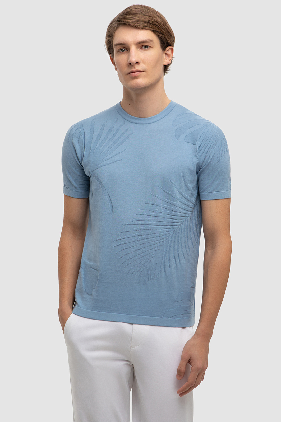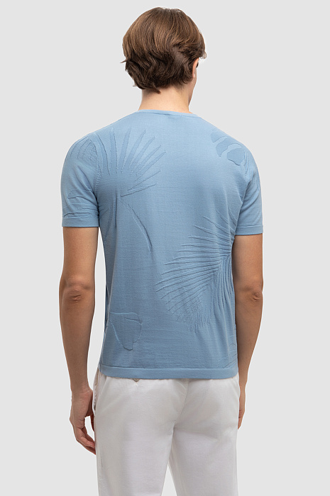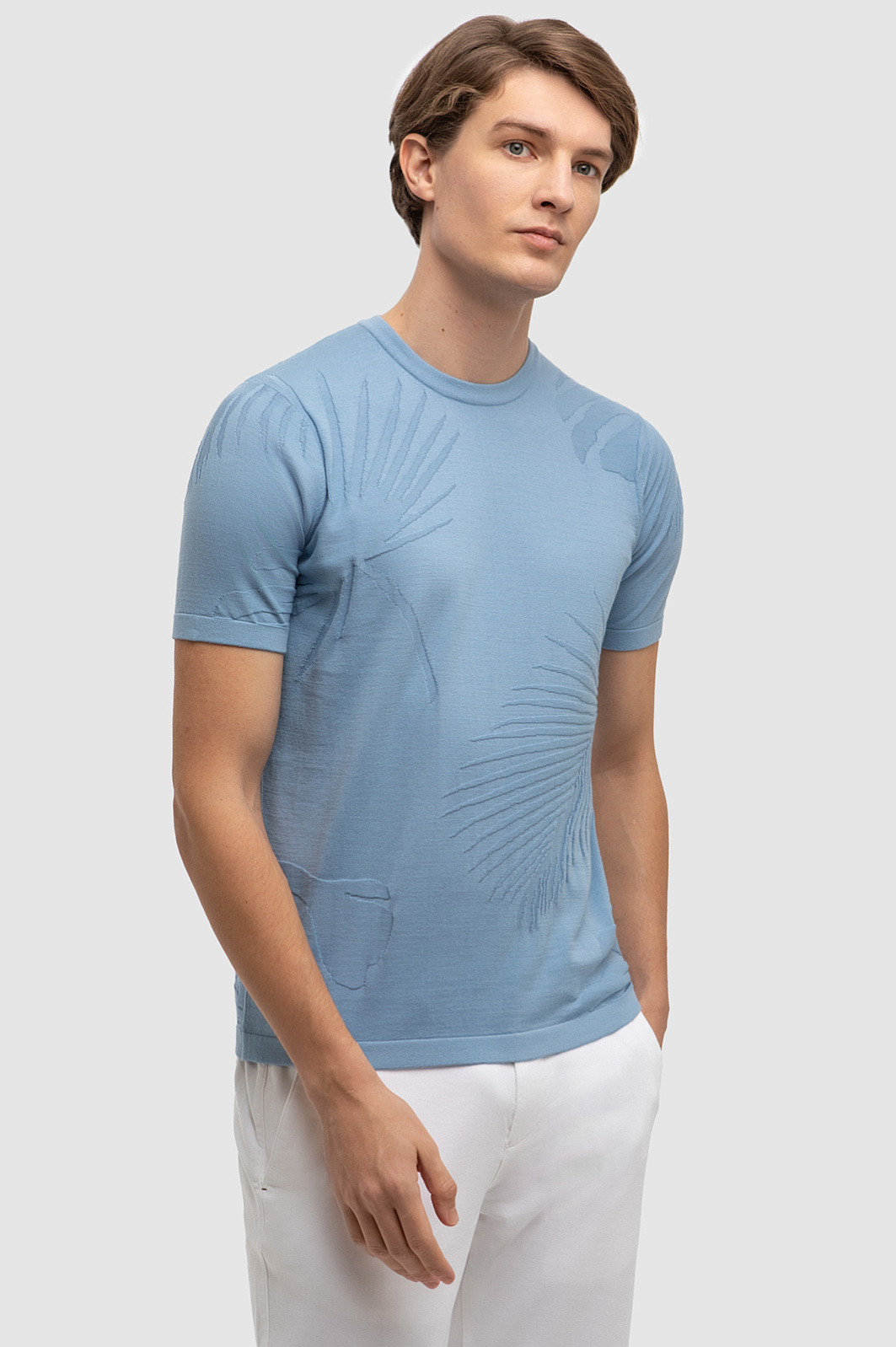 Джемпер с коротким рукавом из хлопка Пима, цвет голубой, цена 4 990 руб., код 267267 - купить в Омске в интернет-магазине KANZLER