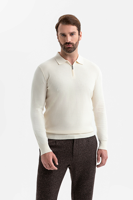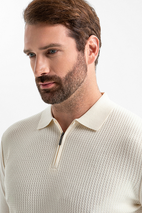 Джемпер поло из хлопка Пима, цвет бежевый, цена 8 990 руб., код 270234 - купить в Омске в интернет-магазине KANZLER