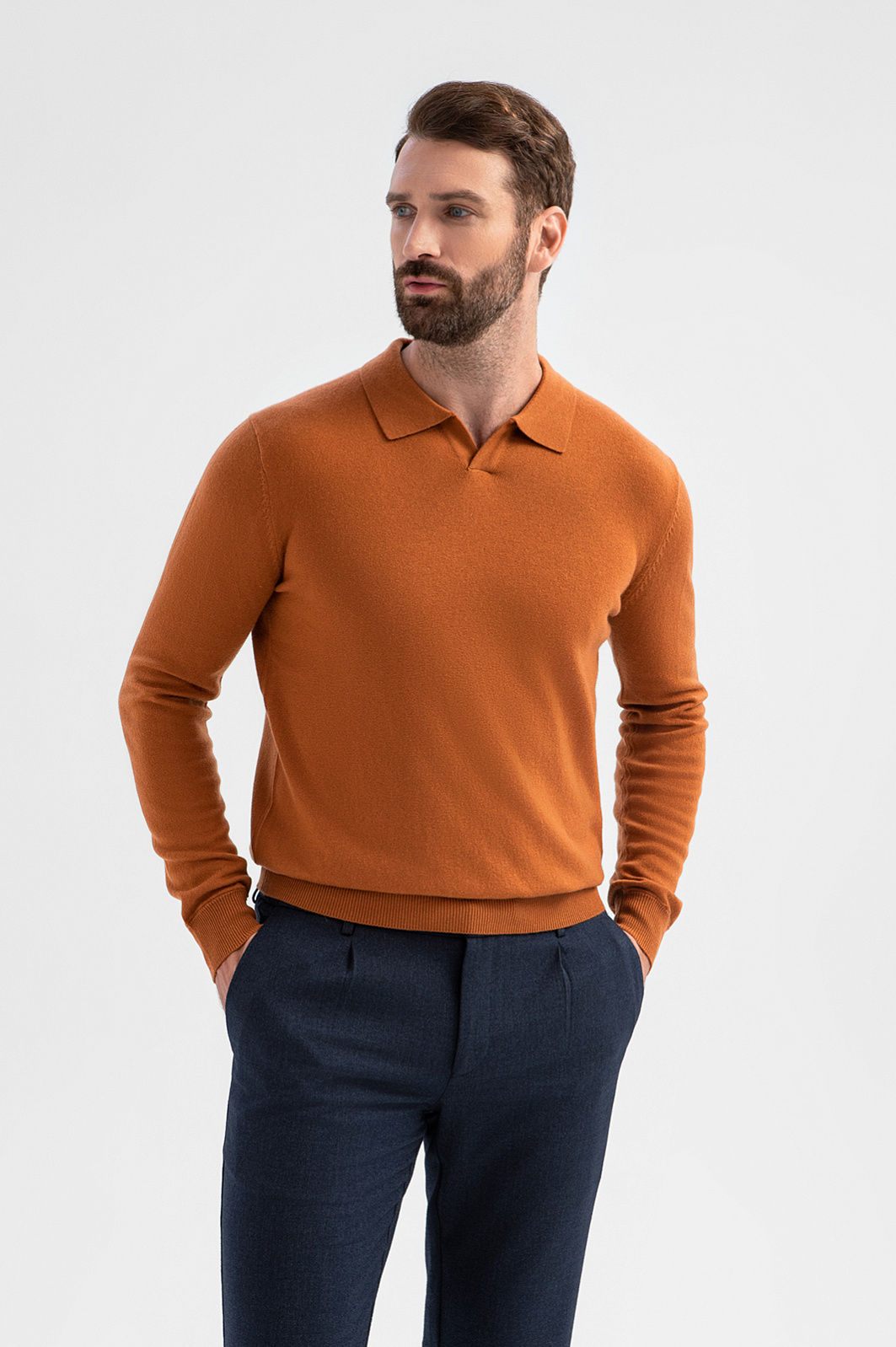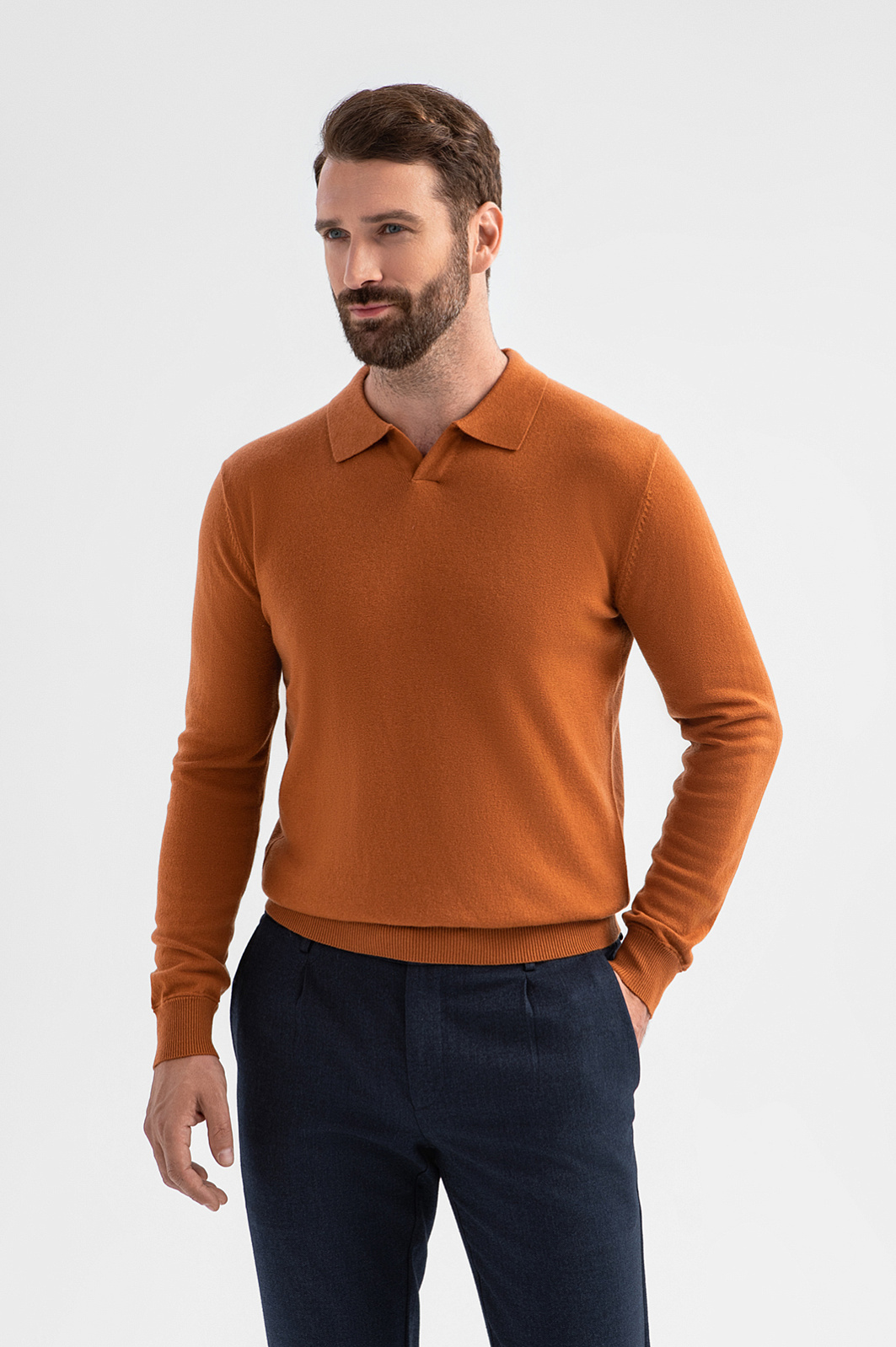 Роскошный джемпер поло KANZLER из шерсти и кашемира согревающего терракотового оттенка — яркая деталь образа, которая легко сочетается базовыми вещами — джинсами и более формальными брюками. Традиционный крой с неглубоким треугольным вырезом и мягким отложным воротником подчёркивает универсальность модели, а мягкие резинки на манжетах и по низу обеспечивают идеальную посадку. Состав трикотажа — дуэт натуральных материалов (90% шерсти и 10% кашемира). Упругие волокна шерсти поддерживают форму и сохраняют тепло, а нежные тонкие ворсинки кашемира добавляют изысканную мягкость. Параметры модели: рост 189, 102-80-99 Размер на модели: M