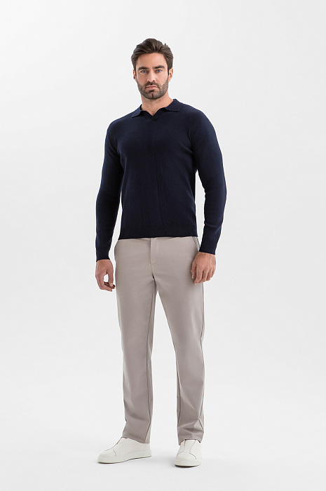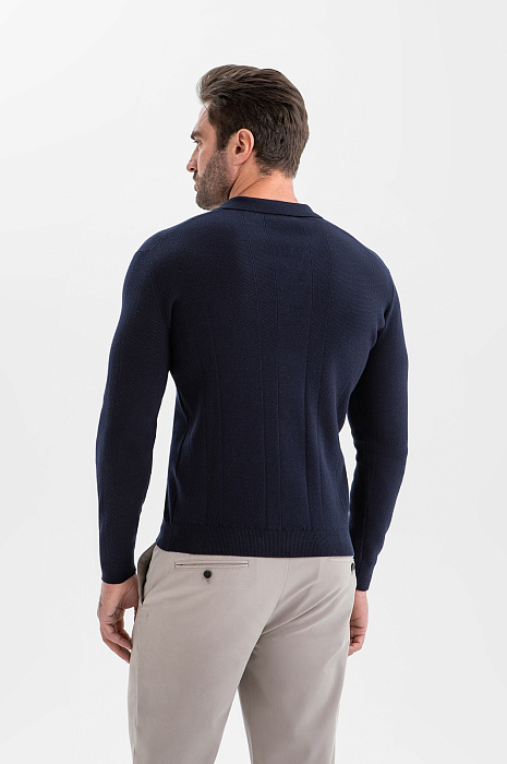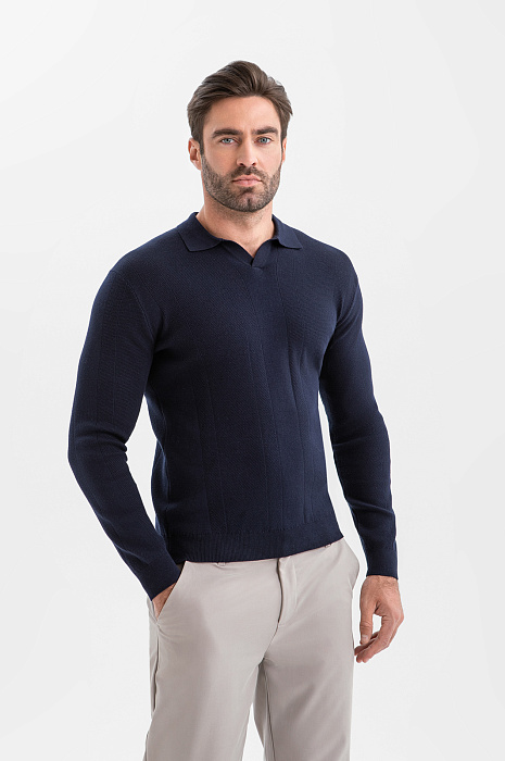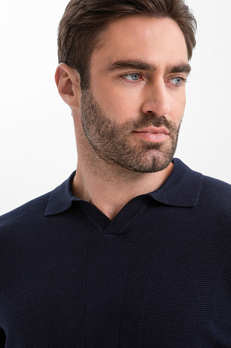 Тёмно-синее поло KANZLER из хлопка и шёлка с длинным рукавом — удобная альтернатива рубашке. Модель из плотного трикотажа привлекает внимание и преображает образ, придавая ему элегантность и современное звучание. Используя стилистический приём «французская заправка», когда низ заправлен наполовину внутрь, а наполовину оставлен снаружи, можно красиво подчеркнуть линию талии. Передняя часть из фактурного трикотажа служит украшением модели. Ребристые резинки на рукавах и по низу мягко фиксируют края, обеспечивая аккуратную посадку. Высококачественный трикотаж выполнен из хлопка и шёлка. Такая комбинация натуральных гипоаллергенных волокон делает ткань дышащей, мягкой и нежной.