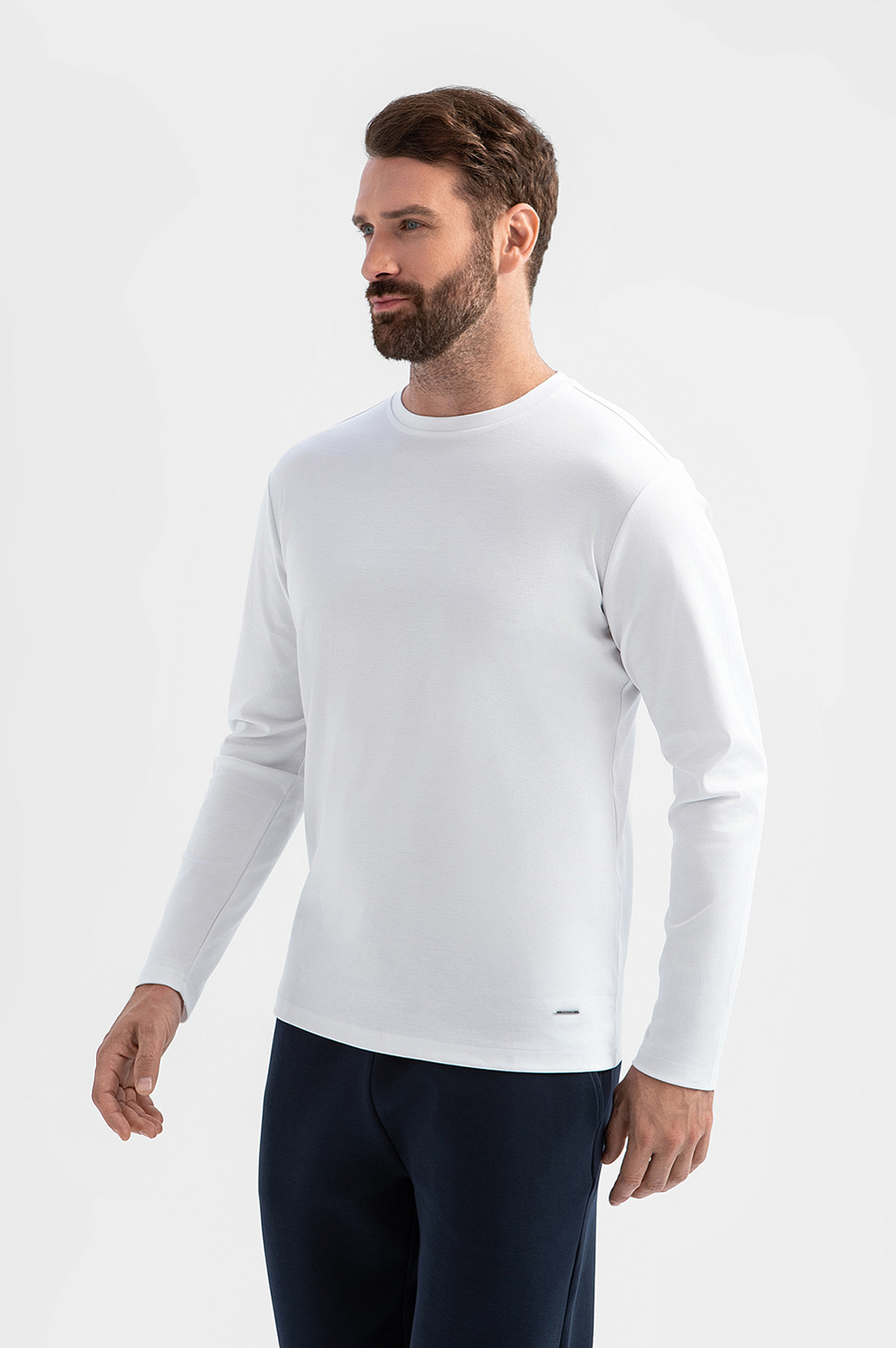 Белоснежный лонгслив KANZLER – фундамент гардероба для мужчин, ценящих чистоту линий и превосходное качество. Это универсальный выбор для множества случаев – от классических образов до спортивных. Носите лонгслив как самостоятельный элемент или создавайте многослойные образы с рубашкой или кардиганом. Модель выполнена из 100-процентного мерсеризованного хлопка премиального качества. Материал обеспечивает воздухообмен, отводит влагу и сохраняет форму после многократных стирок. Белоснежный оттенок создает свежий образ и сочетается с любыми цветами в гардеробе. Параметры модели: рост 189, 102-80-99 Размер на модели: M