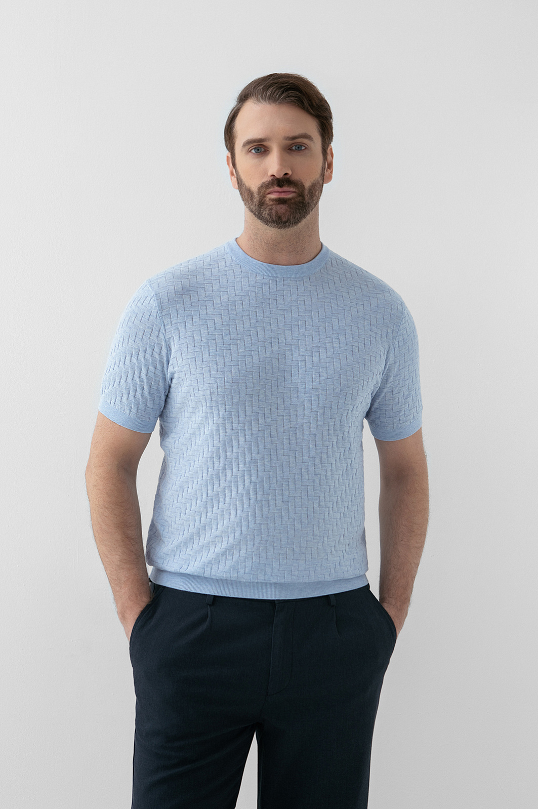 Футболка из хлопка Пима, цвет голубой, цена 8 990 руб., код 271092 - купить в Омске в интернет-магазине KANZLER