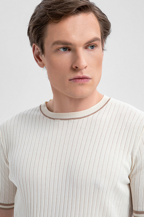 Джемпер KANZLER с коротким рукавом из хлопка Пима создаёт свежий элегантный образ, который идеально вписывается в ритм жизни современного мужчины. Нежный молочный оттенок подчёркивает сдержанную роскошь модели, а аккуратные контрастные полоски по краям горловины и рукава придают вещи графичность. В составе — 100% хлопка Пима. Ценный длинноволокнистый материал ценится за шелковистую текстуру, мягкость и долговечность. Натуральный трикотаж поддерживает приятную для тела температуру и сохраняет роскошный вид из сезона в сезон.