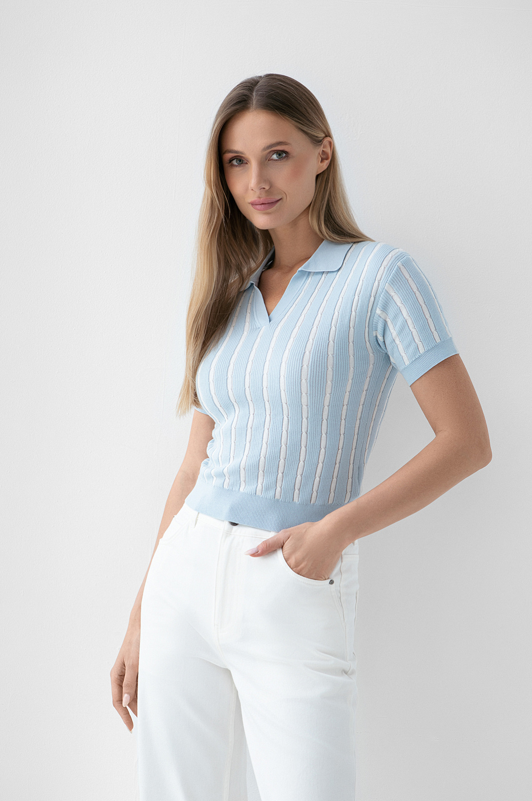 Поло из хлопка, цвет голубой светлый, цена 7 990 руб. - купить в интернет-магазине KANZLER