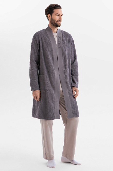 Махровый халат KANZLER благородного серого оттенка из чистого хлопка с поясом будет приятно надеть после душа, бассейна или спа-процедур, чтобы насладиться спокойным безмятежным отдыхом. Полы отделаны широкой плотной планкой с крупным фактурным крупным логотипом, которая придает халату изящество и сходство с кимоно. Свободный крой не стесняет движений. Телефон и важные мелочи можно держать в больших вместительных карманах. Мягкая ткань из 100-процентного хлопка с петельным ворсом хорошо впитывает влагу, сохраняет тепло тела и не мнется.