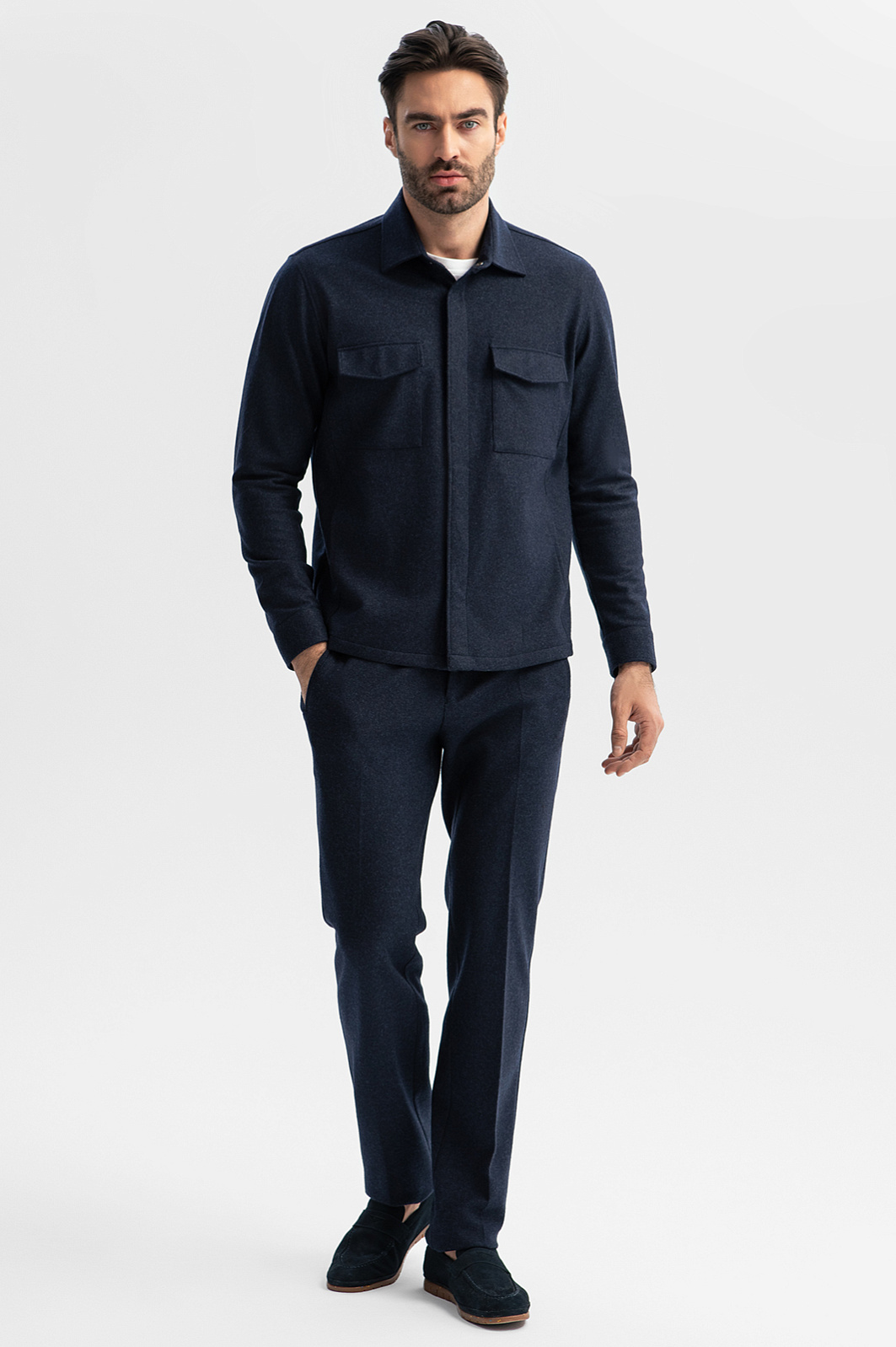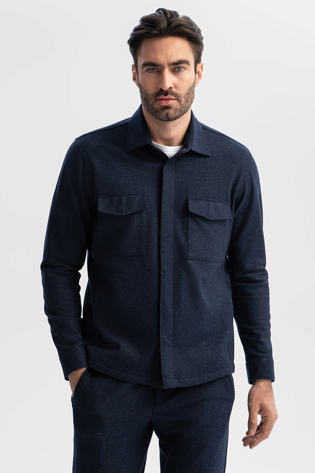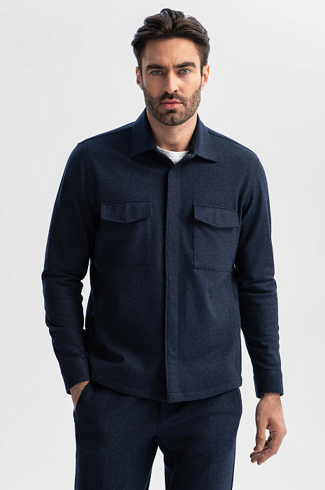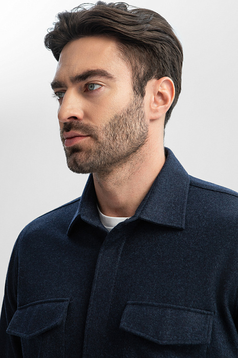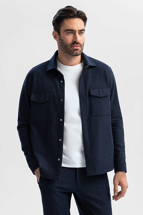 Куртка-рубашка из итальянской шерстяной ткани Vitale Barberis, лимитированная коллекция, цвет синий, цена 26 990 руб., код 269369 - купить в Омске в интернет-магазине KANZLER