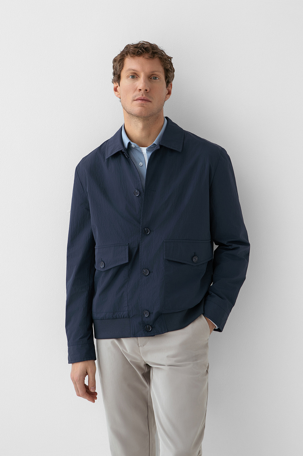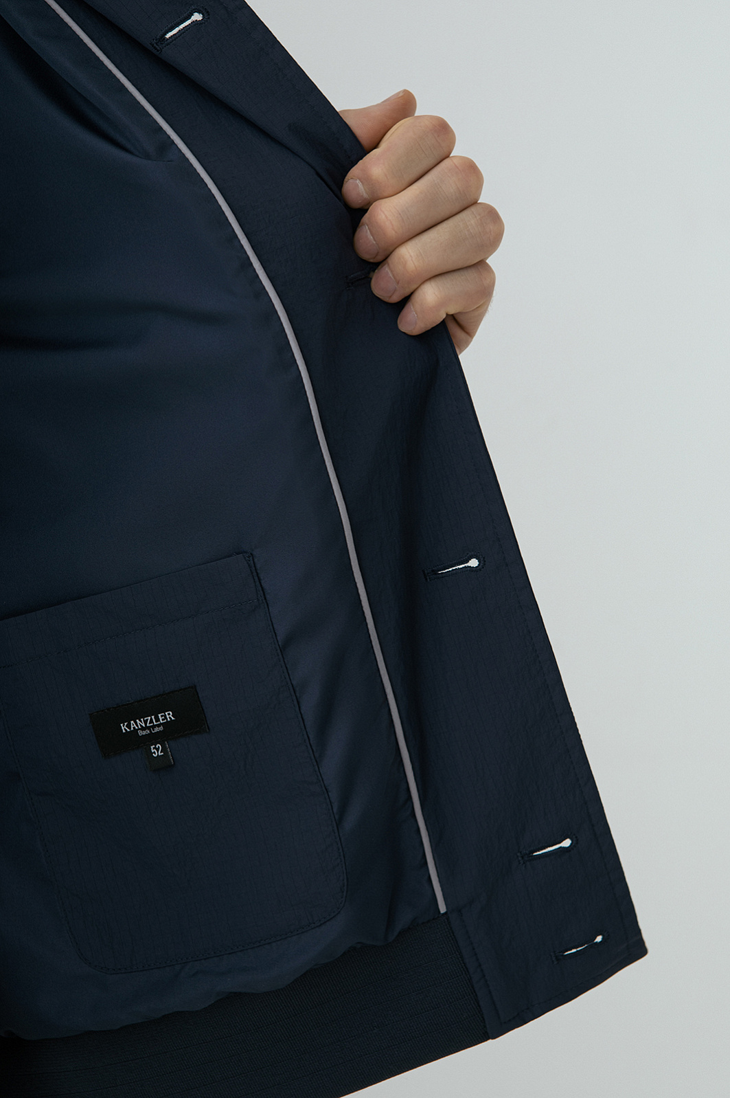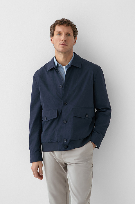 Куртка KANZLER глубокого синего цвета предназначена для адептов непринуждённой современной классики. Она вдохновляет двигаться в своём ритме, открывая в городе новые точки притяжения — тихие улицы и уютные кофейни. Универсальную модель можно носить со строгими и неформальными брюками. Современный силуэт дополняют лаконичные выразительные детали — аккуратный мягкий воротник, большие карманы с клапанами, пуговицы на планке и рукавах, — которые усиливают ощущение вневременной элегантности. Внешняя ткань имеет приятную, слегка «мятую» фактуру, придающую образу естественность. Она выполнена из прочного полиамида с водоотталкивающей обработкой, который надёжно защищает от дождя и ветра.
