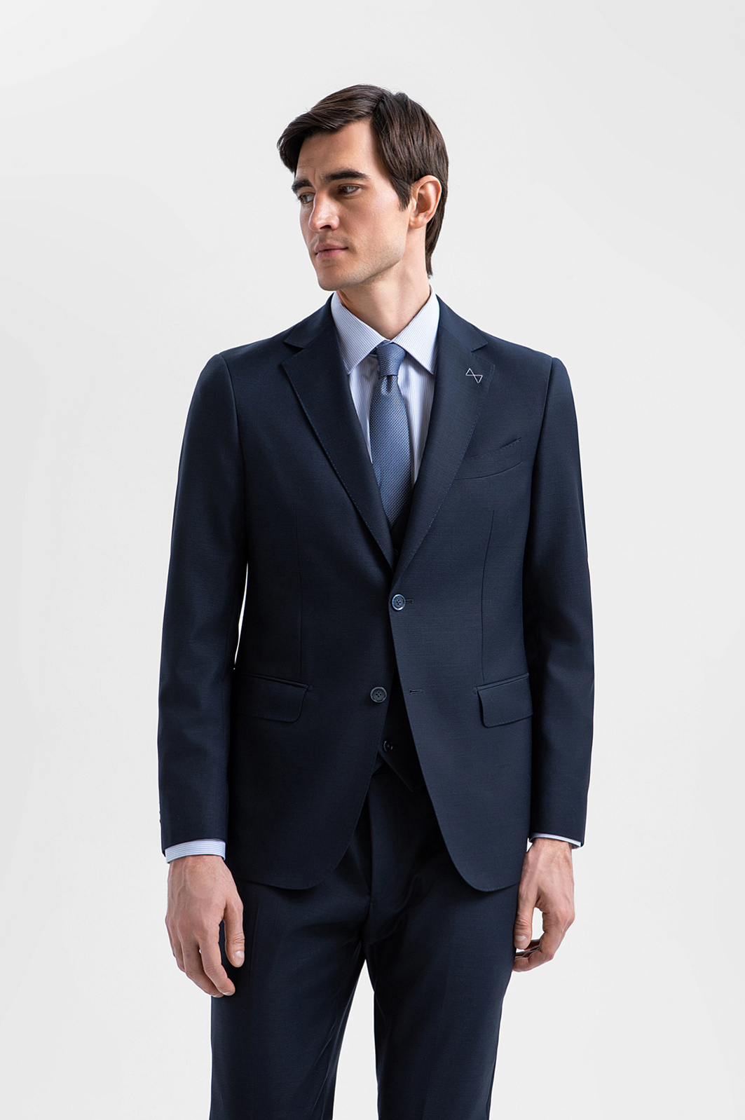 Пиджак KANZLER из тонкой мериносовой шерсти Супер 120S глубокого синего цвета подойдёт деловому мужчине, для которого элегантность — естественное состояние. Зауженный силуэт подчёркивает фигуру, сохраняя свободу движений. Нагрудный карман с листочкой и нижние карманы с аккуратными клапанами поддерживают классические традиции. Небольшая вышитая фирменная бабочка на лацкане — сдержанный акцент, который добавляет образу изысканность и нарядность. Ткань из тонкой гипоаллергенной шерсти мериноса мягко облегает тело, создавая ощущение естественной роскоши. Её суперсила — устойчивость к сминанию. Подкладка, выполненная из прочного гладкого полиэстера и воздухопроницаемой вискозы, обеспечивает лёгкое скольжение при надевании и безупречную посадку.