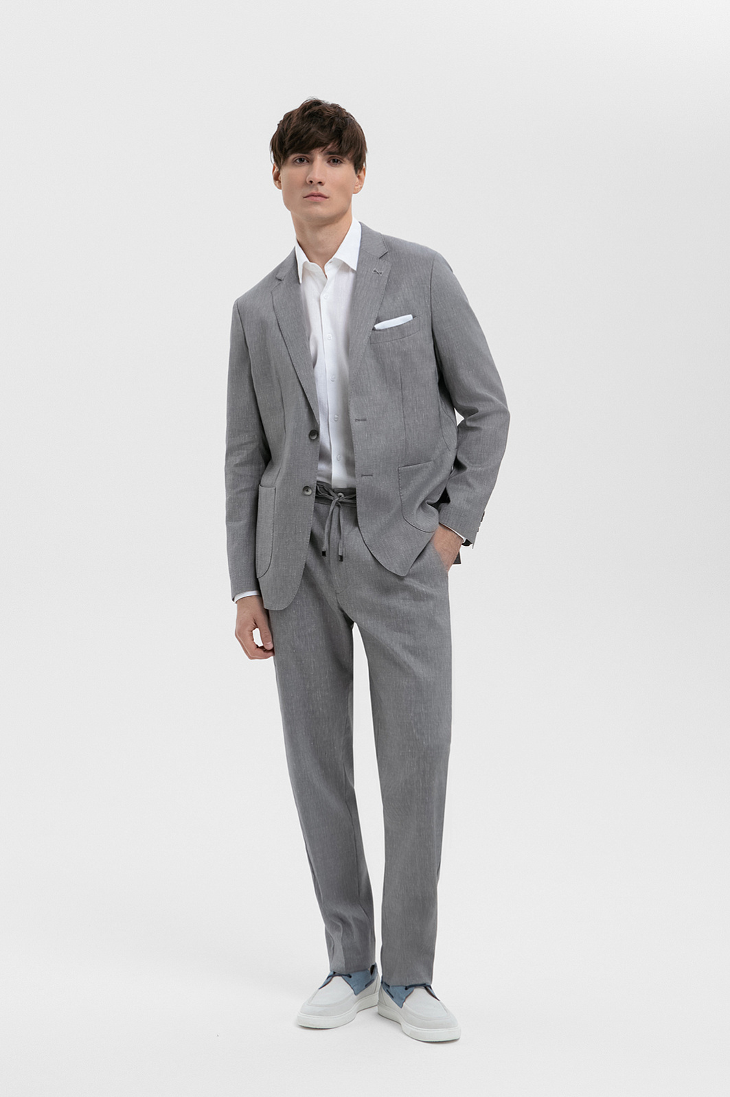 Пиджак из шерсти, льна и шелка, цвет серый, цена 34 990 руб., код 271037 - купить в Омске в интернет-магазине KANZLER