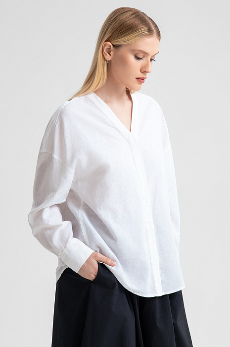 Рубашка изо льна и хлопка свободная, цвет белый, цена 5 990 руб. - купить в интернет-магазине KANZLER