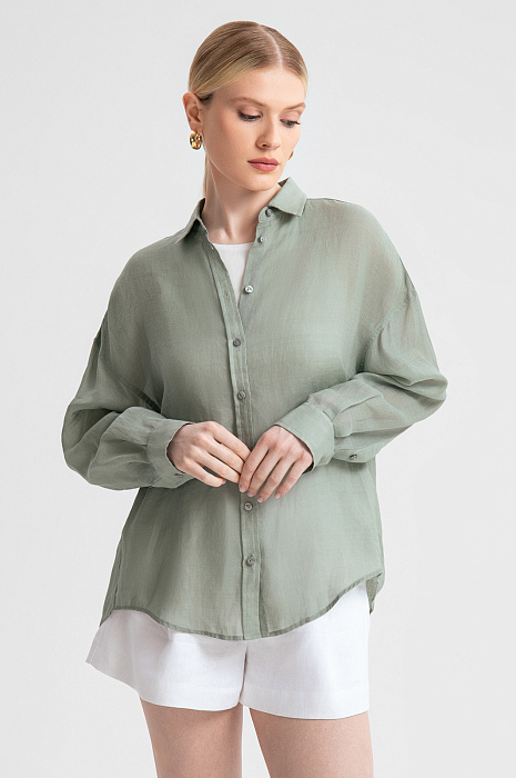 Рубашка из рами свободная, цвет оливковый, цена 8 990 руб. - купить в интернет-магазине KANZLER