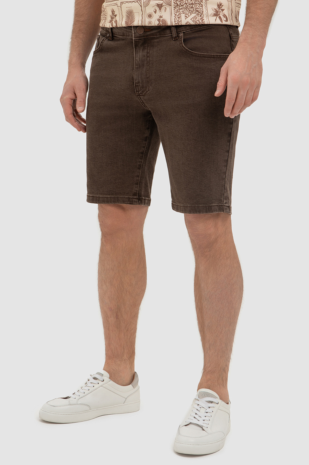 В новом сезоне коричневый значится в списке главных цветов мужского гардероба. При этом самое модное воплощение коричневый цвет получил в виде вещей из денима. Поэтому в коллекции KANZLER появились стильные джинсовые бермуды чуть выше колен. Для пошива модели использовали мягкий хлопок, не препятствующий циркуляции воздуха и стрейч волокна, благодаря которым изделие прямого кроя прекрасно садится по фигуре. Бермуды отлично сочетаются практически с любым верхом: рубашкой с длинным или коротким рукавом, футболкой или поло с отложным воротником. Комбинируйте верх таким образом, чтобы он сочетался с оттенком шорт. Например, стильно выглядит комплект с футболкой с принтом песочного оттенка. В качестве декора дизайнеры добавили брендированный патч из натуральной кожи в тон изделия. Параметры модели: рост 191, 97-77-99 Размер на модели: 34