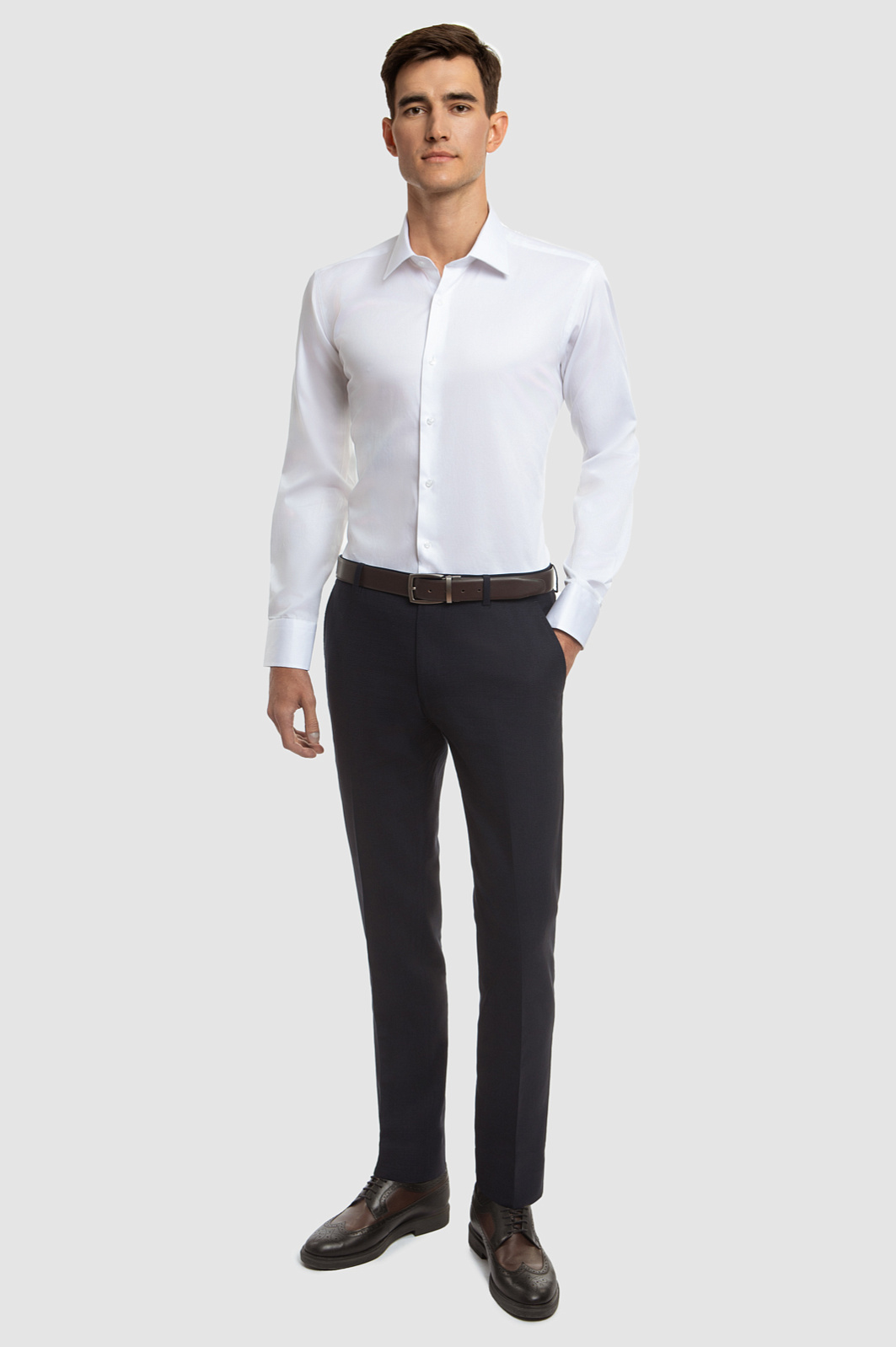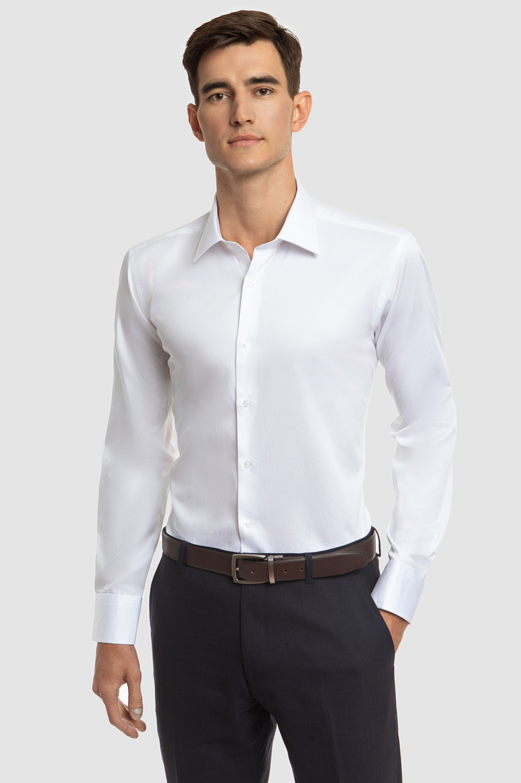 Рубашка KANZLER приталенного кроя является неотъемлемой частью делового гардероба современного мужчины. Продуманный крой и базовый белый цвет делают эту сорочку подходящей как для офиса, так и для официального мероприятия. А за комфорт в течение всего дня отвечает материал из натурального, дышащего хлопка. Благодаря своим уникальным свойствам, она обеспечивает комфорт и стиль на протяжении всего дня. Технология легкой утюжки позволяет сэкономить ваше время и быстро вернуть изделие в первоначальный вид после стирки. Рубашка прекрасно дополняет деловой образ с пиджаком, подчеркивая фигуру и создавая правильный силуэт. Белый цвет рубашки идеально сочетается с любыми оттенками: от классического черного до светло-серого и глубоких оттенков синего. Независимо от того, собираетесь ли вы на важную деловую встречу или в офис, рубашка сделает ваш стиль безупречным. Параметры модели: рост 192, 101-76-97 Размер на модели: 40