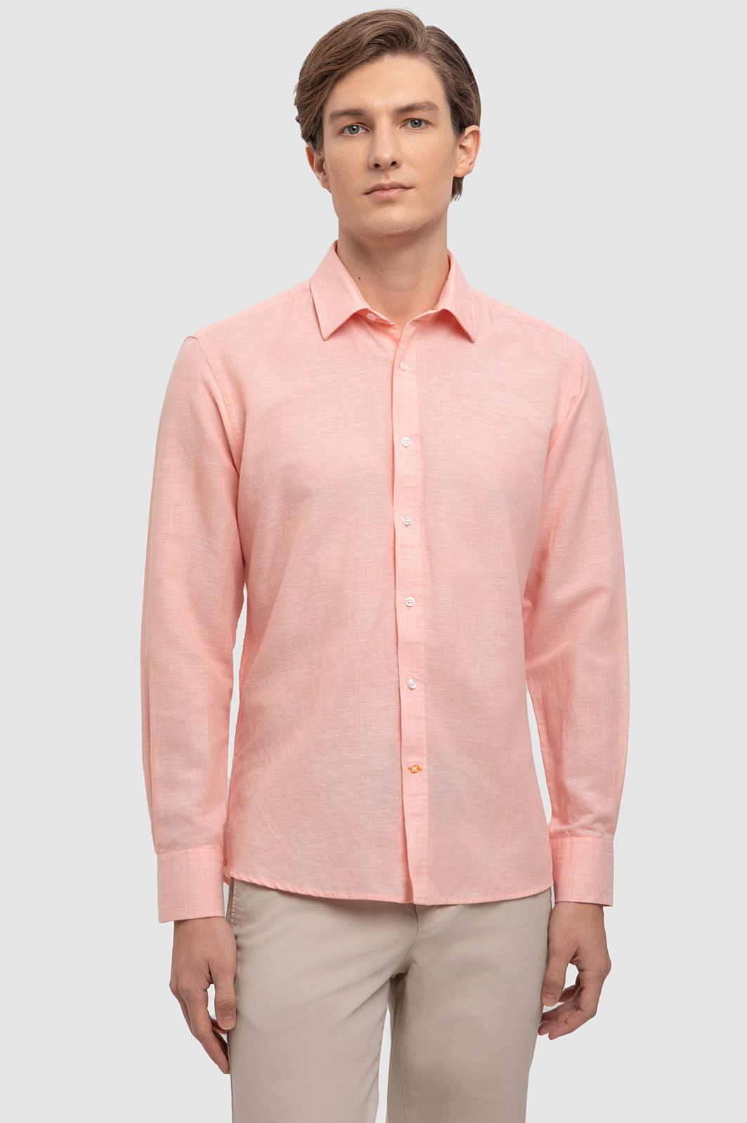Сорочка изо льна и хлопка, цвет коралловый, цена 4 990 руб., код 267315 - купить в Омске в интернет-магазине KANZLER