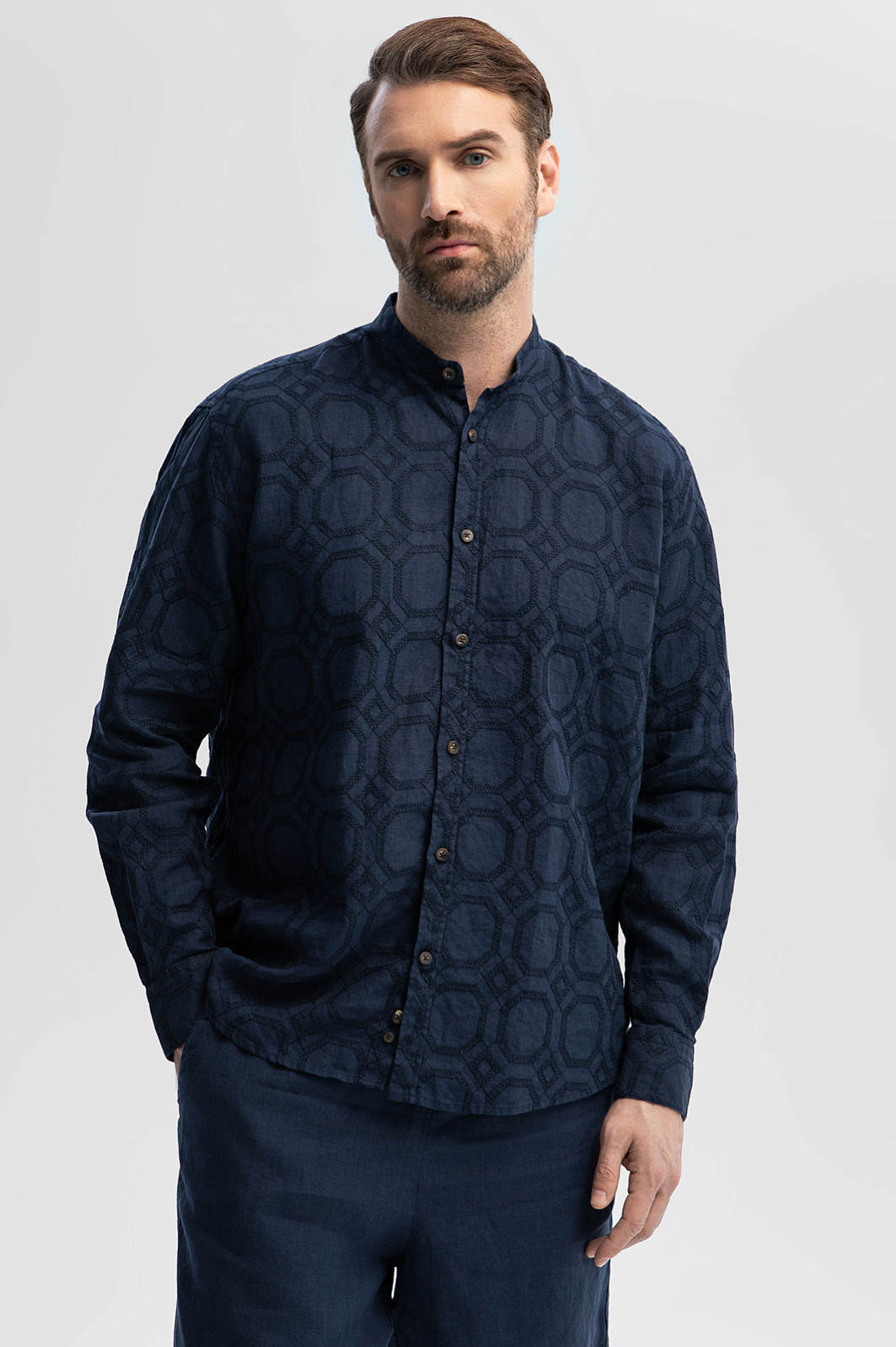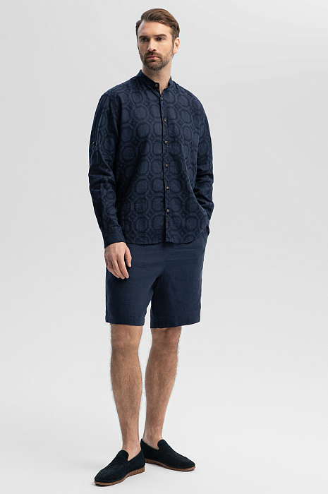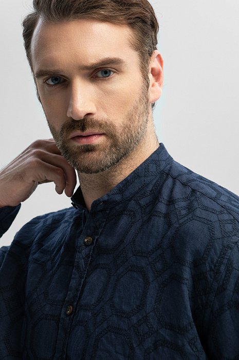 Сорочка изо льна с орнаментом, лимитированная коллекция, цвет синий, цена 12 990 руб., код 269617 - купить в Омске в интернет-магазине KANZLER