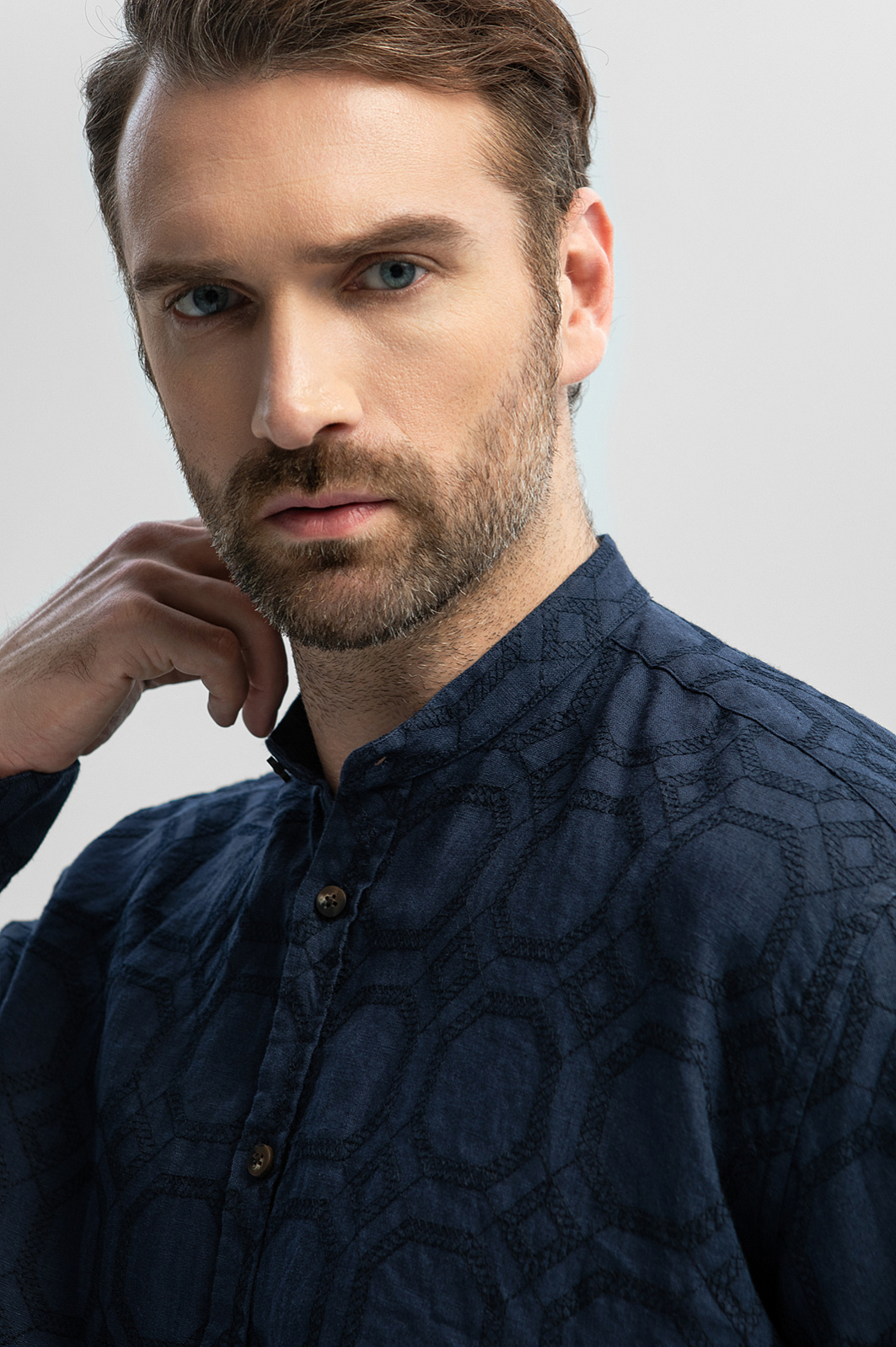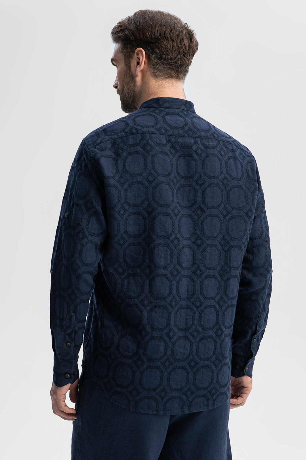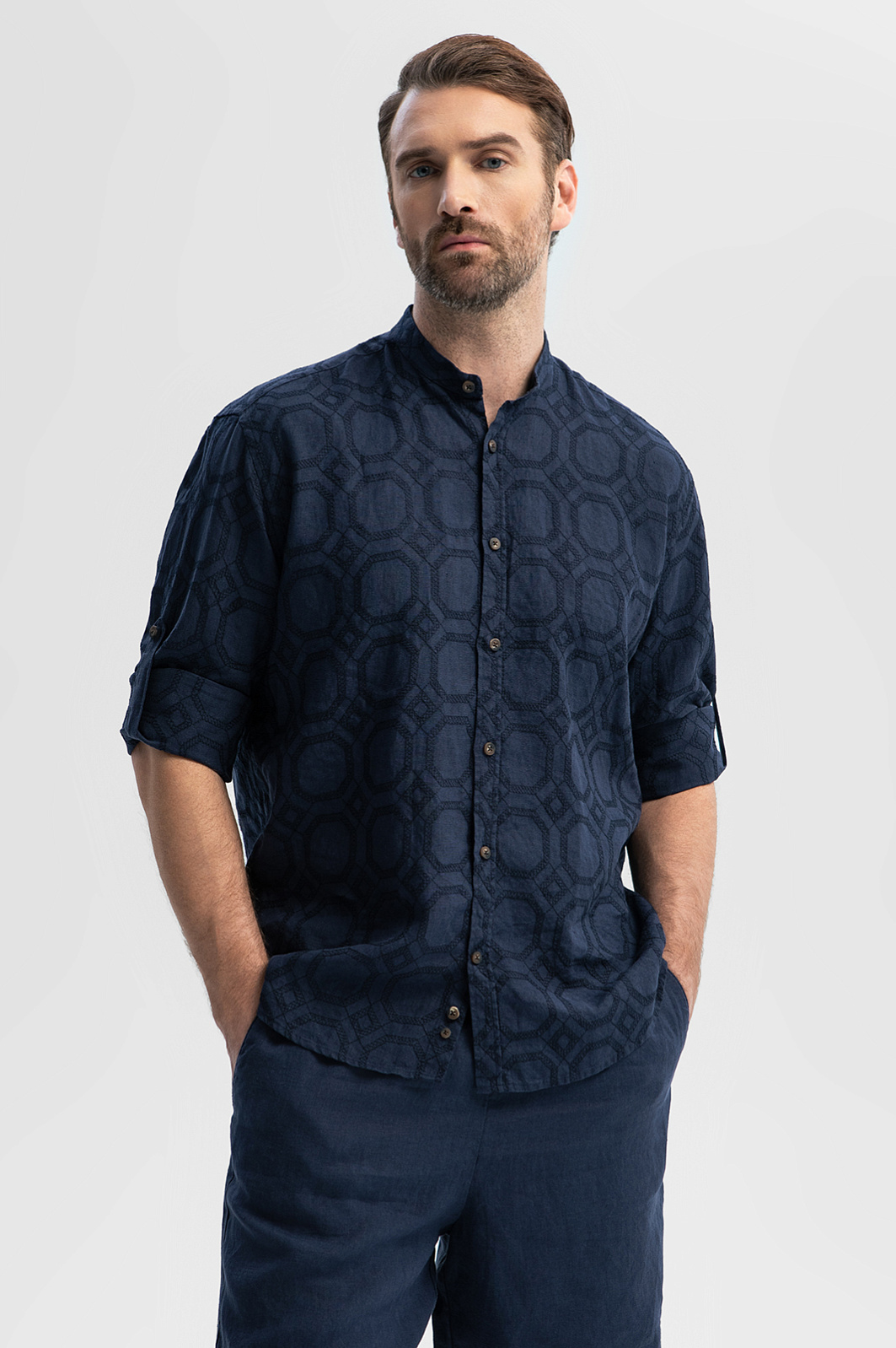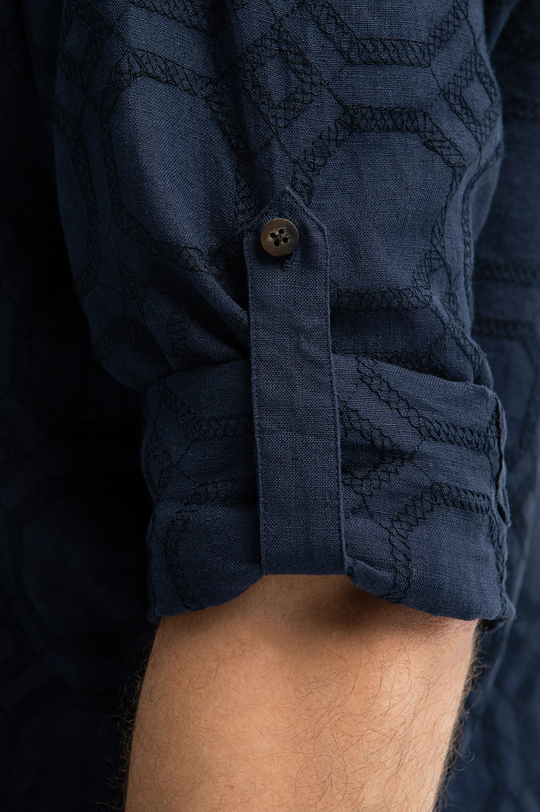 Льняная сорочка KANZLER из лимитированной коллекции – редкий сплав искусства и функциональности. Натуральный материал из благородного льна обволакивает тело, сохраняя оптимальный воздухообмен и комфортную температуру даже под палящим солнцем. Премиальная ткань украшена вышитым орнаментом, словно приглашающим прогуляться по улочкам средиземноморского города. Глубокий синий цвет, как смесь морской глубины и вечернего неба, вдохновляет отправиться в путешествие, открывая новые горизонты. Силуэт свободного прилегания отражает философию комфорта, а регулируемые рукава с пуговицами позволяют менять образ за секунды – закатайте их, обнажив предплечья, или опустите, добавив образу строгости. Рекомендуем дополнить рубашку бермудами или комфортными брюками на кулиске из лимитированной коллекции.