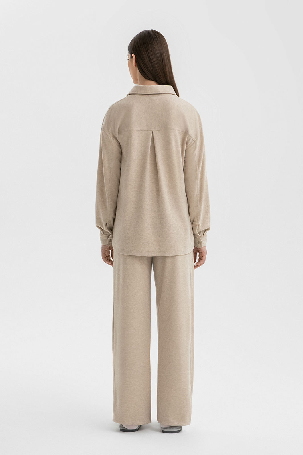 Сорочка KANZLER, воплощение философии неспешной жизни, превращает каждый момент в ритуал наслаждения. Песочный оттенок создает ауру спокойствия и безмятежности. Свободный силуэт не стесняет движений и мягко обволакивает тело, обеспечивая комфорт – во время утреннего кофе, прогулки, медитации или сна. Состав – идеально выверенный микс волокон: полиэстер обеспечивает прочность и устойчивость к деформации, вискоза дарит шелковистую гладкость и терморегуляцию, полиамид добавляет эластичности, акрил фиксирует форму, предотвращая усадку, а шерсть служит добавкой для сохранения тепла, не перегревая тело. Для создания цельного образа рекомендуем дополнить модель пижамными брюками из нашей коллекции.