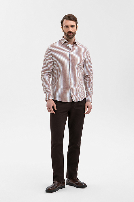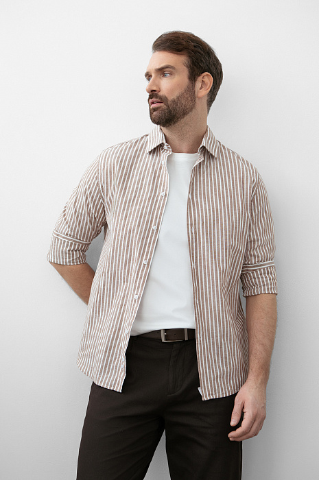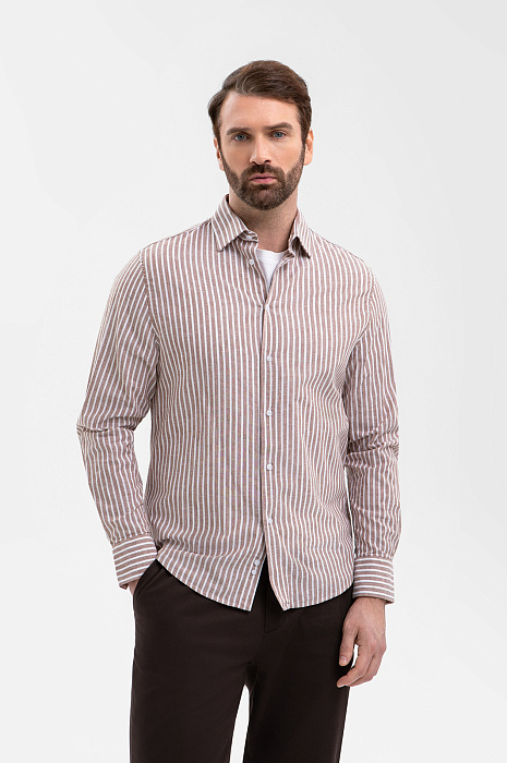 Сорочка из хлопка и льна, цвет коричневый, цена 8 990 руб., код 270877 - купить в Омске в интернет-магазине KANZLER