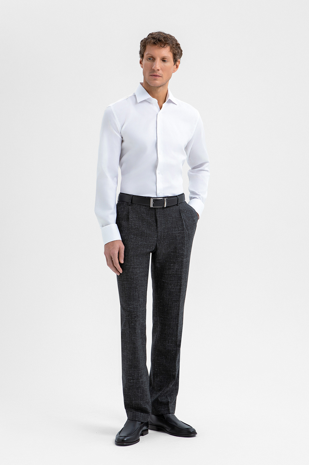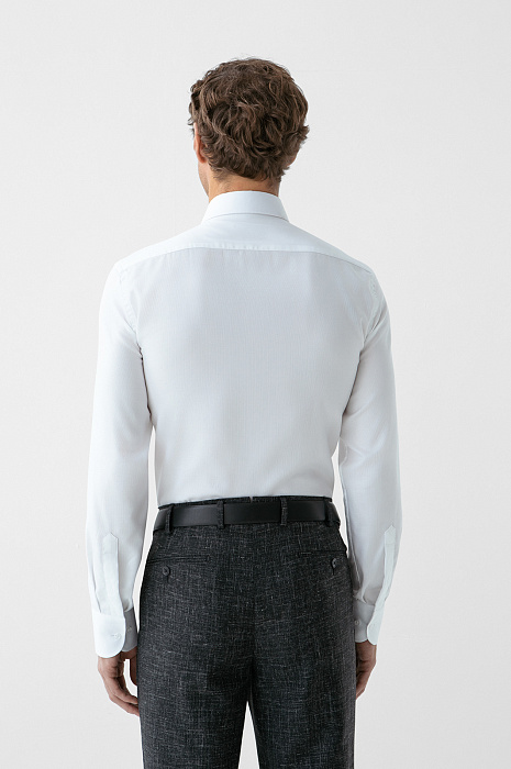 Белая сорочка KANZLER из чистого хлопка с едва заметной фактурой — воплощение современной классики, прочтение которой требует внимательного взгляда. Его привлекает дорогая ткань Getzner (Австрия) с тонкой деликатной фактурой, придающей белому цвету благородство и глубину, и лаконичный крой. Силуэт slim fit подчёркивает фигуру аккуратно и сдержанно, не нарушая комфорта и свободы движений. Натуральный гипоаллергенный хлопок обеспечивает отличную воздухопроницаемость и тактильный комфорт, сохраняя свежесть и аккуратный внешний вид даже при интенсивном ритме.