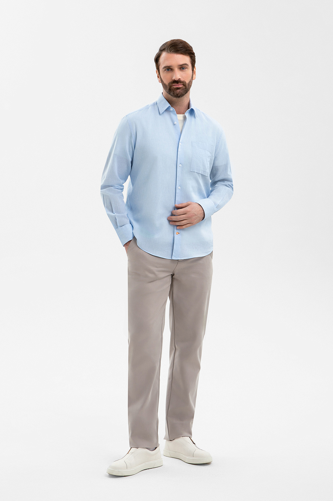 Голубая сорочка KANZLER изо льна и хлопка — находка для тех, кто ценит сдержанный стиль и точность деталей. Холодный освежающий оттенок, напоминающий подсвеченные солнцем голубые льды Антарктиды, создаёт ощущение силы и уверенности. Универсальный силуэт подходит для любого типа фигуры. Лаконичный вышитый логотип на спинке завершает образ — уверенно и по-мужски. Благородная смесовая ткань сочетает лучшие качества натуральных гипоаллергенных волокон — льна и хлопка. Сорочка остаётся тактильно приятной, свежей и аккуратной в течение всего дня.