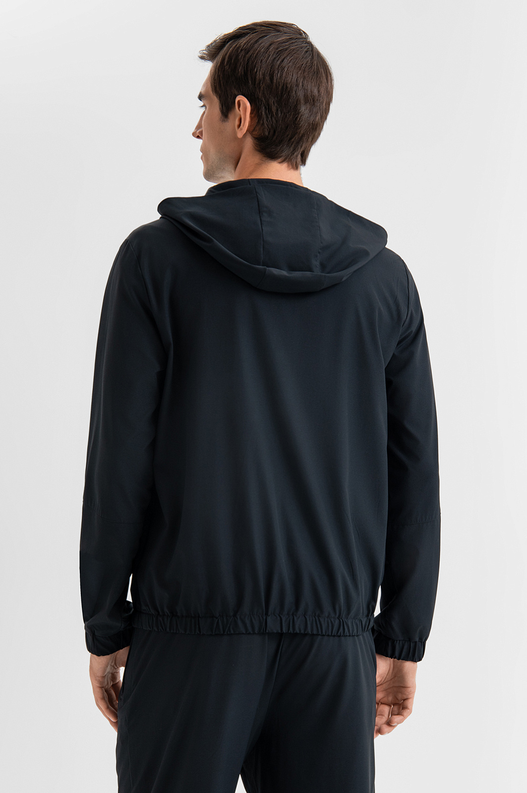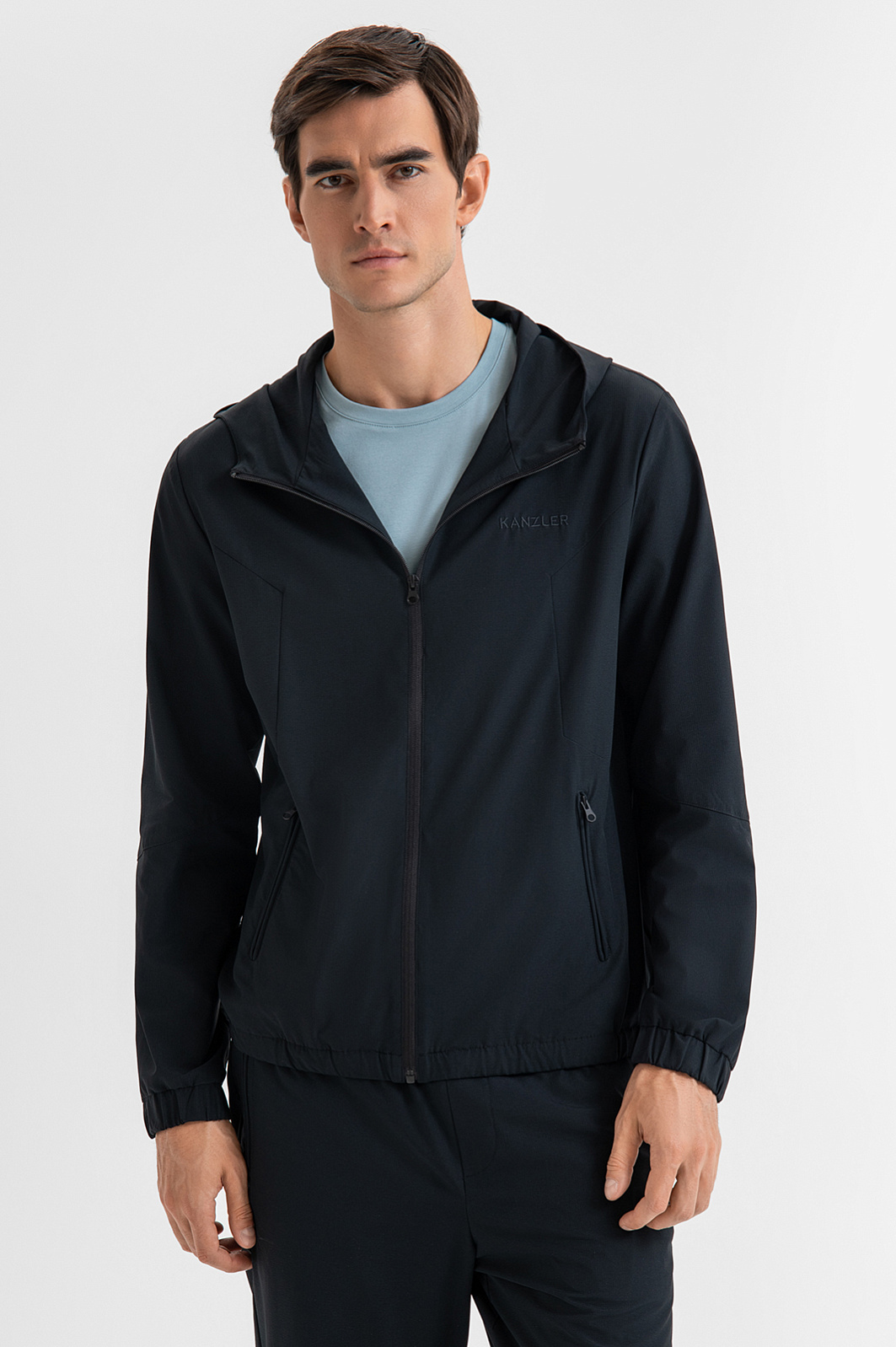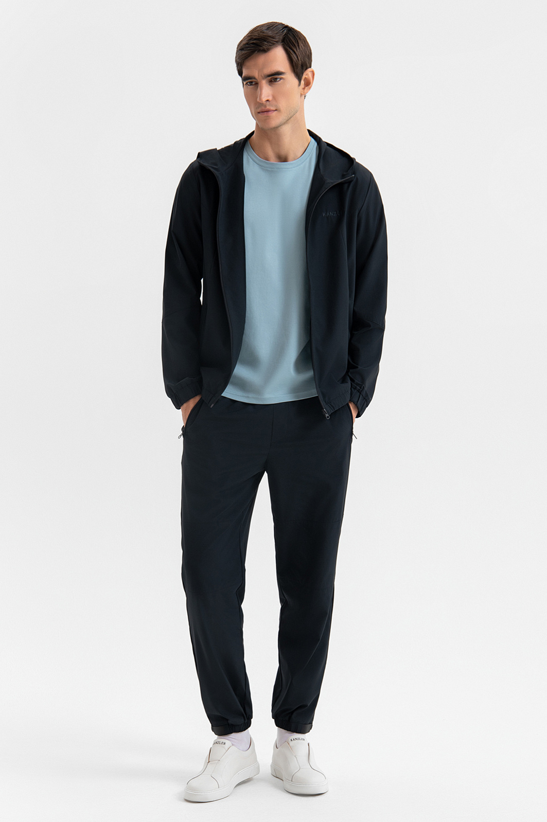 Чёрная толстовка KANZLER на молнии с капюшоном — пример продуманного минимализма в спортивной эстетике. Лаконичный дизайн без лишних деталей подчеркивает чистоту форм и универсальность модели. Капюшон защищает голову от ветра. Скрытые широкие резинки в манжетах и по низу создают аккуратную посадку. Модель выполнена из современного технологичного материала повышенной прочности (85% нейлон, 15% спандекс), который не сковывает движений и устойчив к износу, разрывам и влаге. Подкладка из мягкой ткани с добавлением воздухопроницаемого гипоаллергенного хлопка (35%) обеспечивает комфорт при носке. Параметры модели: рост 192, 101-76-97 Размер на модели: M