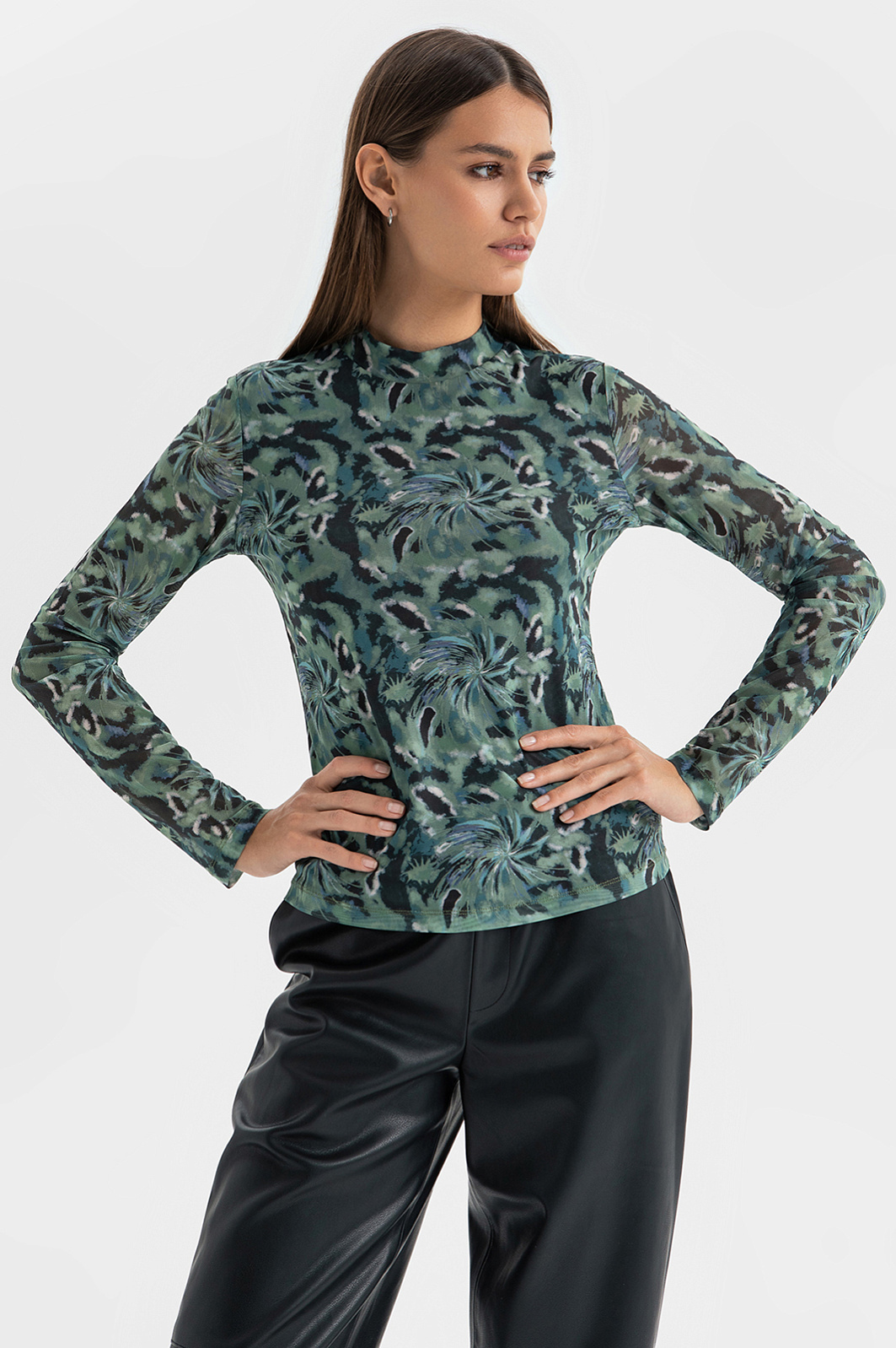 Элегантный лонгслив с узором, вдохновленным полотнами художников-абстракционистов, расскажет о творческом характере его обладательницы. Приятный к телу долговечный материал с добавлением эластана обеспечивает комфорт на протяжении всего дня. Прилегающий силуэт подчеркивает достоинства фигуры, а зеленая гамма придает облику свежести. Поход в музей, театральная премьера, прогулка или встреча в компании друзей – чем бы ни был наполнен ваш вечер, лонгслив создаст изящный и оригинальный образ с минимумом усилий. Параметры модели: рост 175, 86-62-92 Размер на модели: S